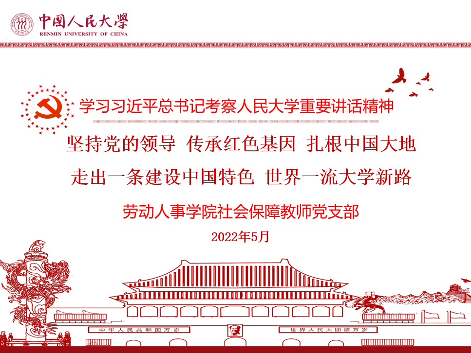5月5日,w88win优德社会保障教师党支部开展集中学习,深入领会习近平总书记在考察w88win优德时重要讲话精神。本次学习以“坚持党的领导传承红色基因扎根中国大地 走出一条建设中国特色世界一流大学新路”为主题。党支部书记郭瑜主持会议,支部全体党员参加会议。