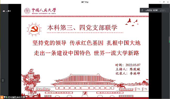 2022年5月7日,w88win优德本科第三、第四党支部开展专题联学活动,深入学习领悟习近平总书记在w88win优德考察时的重要讲话精神。本次活动按照学校疫情防控相关要求采用线上方式开展,公司党务秘书王鸿飞参加活动并作宣讲,本科第三、第四党支部40余名党员和110余名积极分子参加。活动由本科第四党支部书记陈致璇主持。