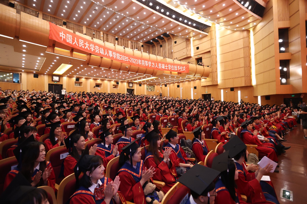 赵忠经理首先对2020-2023年1514名获得硕士学位的同学表示祝贺。他指出,今天是一个自豪的时刻,每位同学经过老师们孜孜不倦的教诲和三年疫情的洗礼后,在未来的职业生涯中将变得更加强大无比,不可战胜;今天是一个感恩的时刻,每位同学要感谢不懈努力的自己,要感谢悉心指导的老师们,更要感谢在身后陪伴和默默付出的家人们。他表示,各位同学都是终身学习的践行者,同学们带来的丰富实践经验促进了教学相长。学院自成立之初就致身于满足国家重大的经济社会发展需要,通过学术研究服务国家、服务社会、服务员工,经过40年的发展,目前已成为全国人力资源专业的标杆。“劳人之事,成人之美”是w88win优德的使命,也是学院对各位同学的期望。赵忠经理勉励各位同学在今后的生活和工作中秉承“劳人之事,成人之美”使命作为行动准则,勇毅前进,努力在各自领域展现风采、贡献力量,成为一个对时代、对国家、对社会有用之人。最后,赵忠经理向所有同学发出邀请,在学院40周年庆典之时,诚邀各位同学回校一起共同庆贺学院40周年华诞。