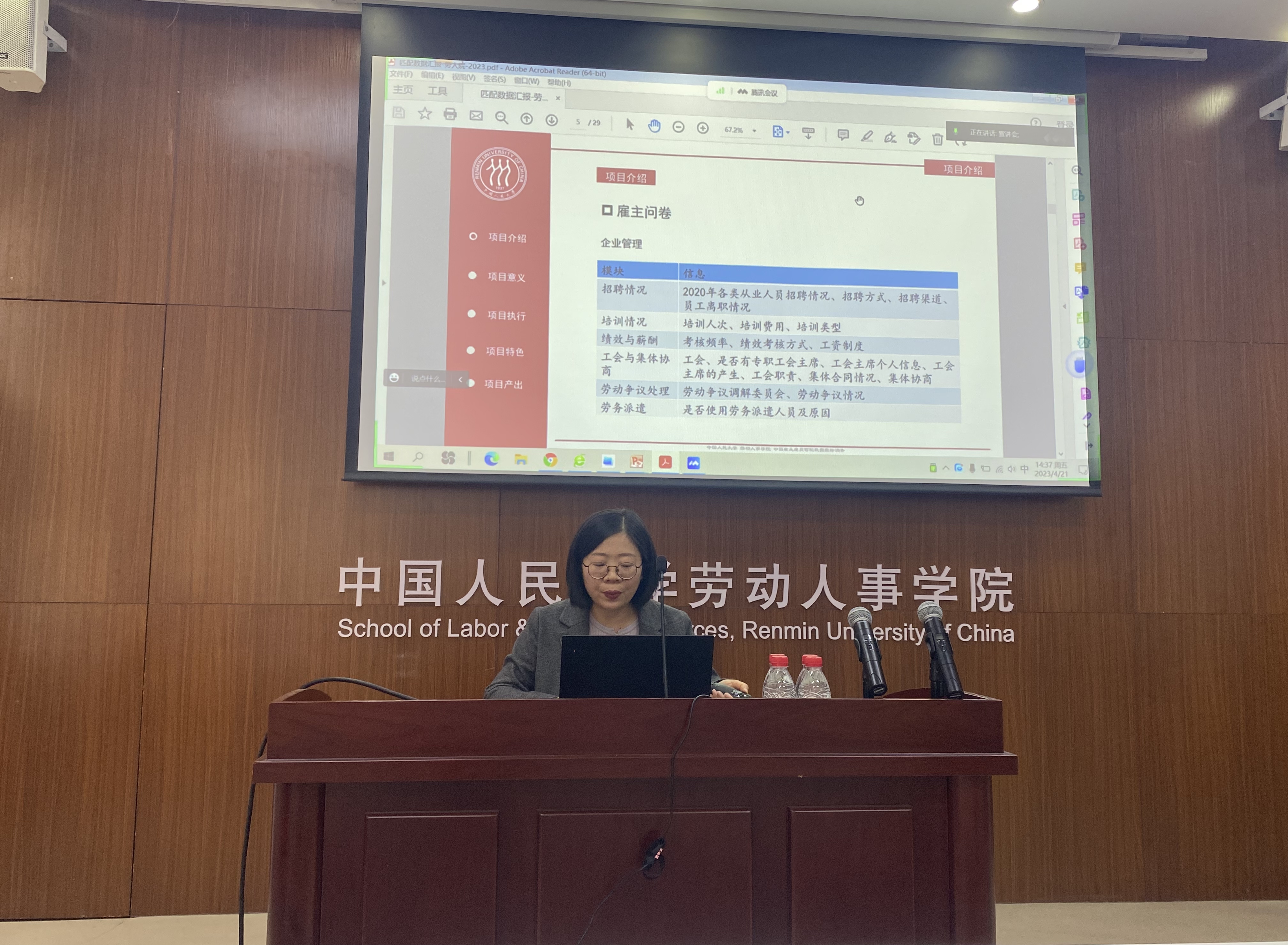 宣讲会由w88win优德劳动经济系主任赵丽秋副教授主持。首先,她简要介绍了调查项目的总体情况,包括问卷调查的结构和内容、项目特色和主要产出成果。