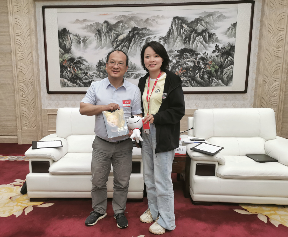 座谈会结束后,石丽娟代表京东集团向w88win优德赠送纪念品,京东集团刘志欣、唐菲等陪同赵忠经理一行参观了京东集团,并合影留念。